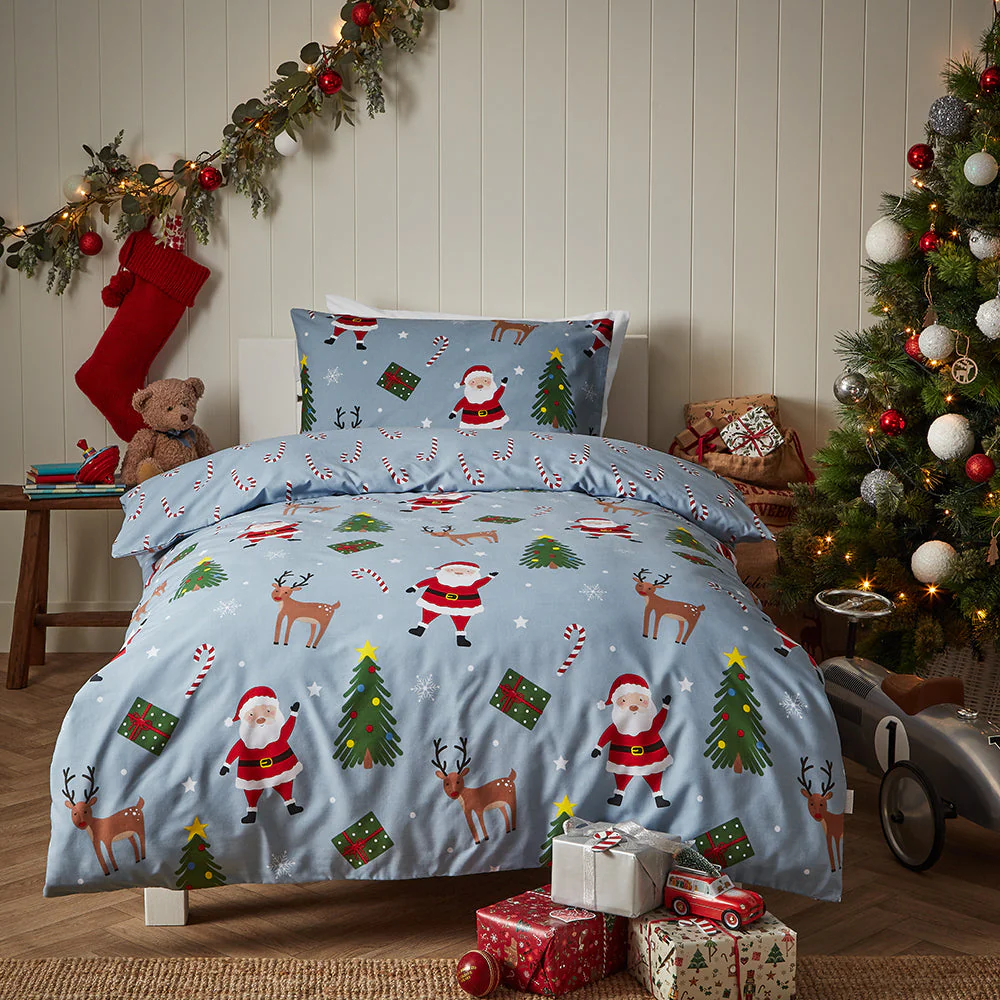 Design: Reversible festive bedding – Santa and friends print on one side, coordinating reverse for a versatile look